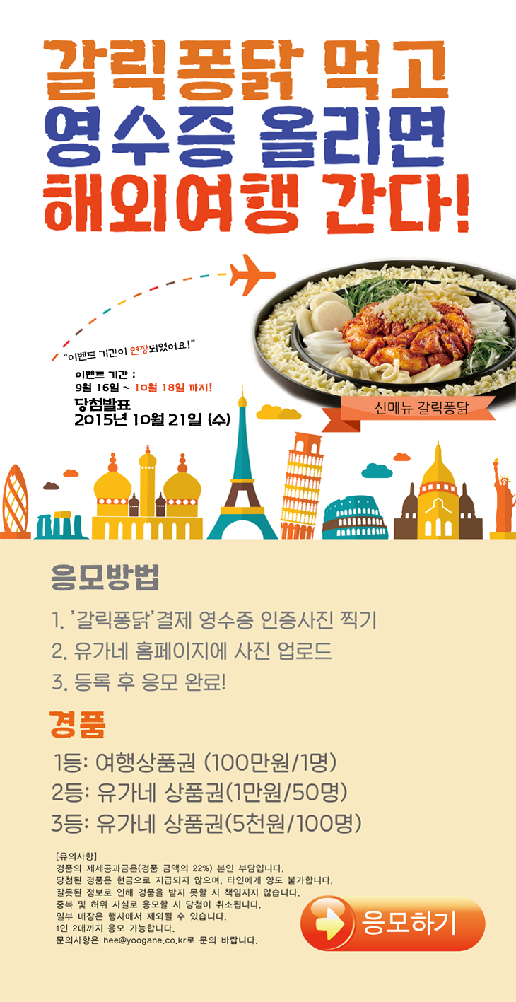 갈릭퐁닭 먹고 영수증 올리면 해외여행 간다!