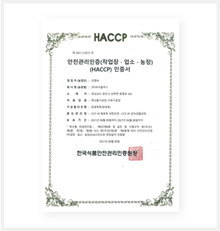 Yoogane factory is certified by HACCP